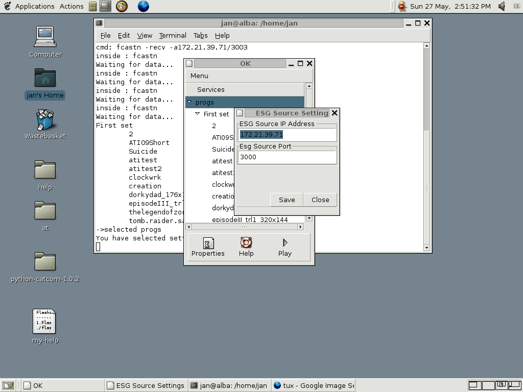 + Displays the ESG Source settings dialog to configure ESG source IP / Port [Home]